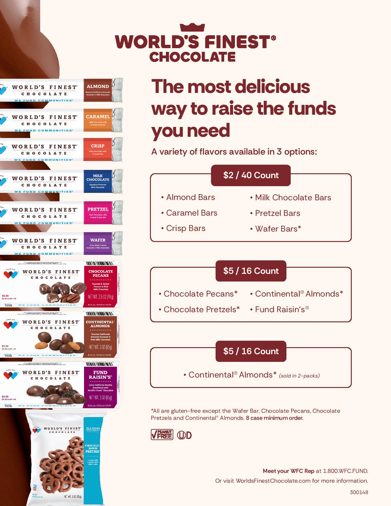 World's Finest® Chocolate has been a staple in fundraising for over 60 years. The chocolate is rich, fresh and full of flavor. World's Finest has helped many organizations regardless of their size raise the necessary funds with the variety of $2 & $5 premium quality chocolate products.